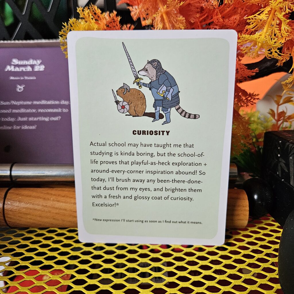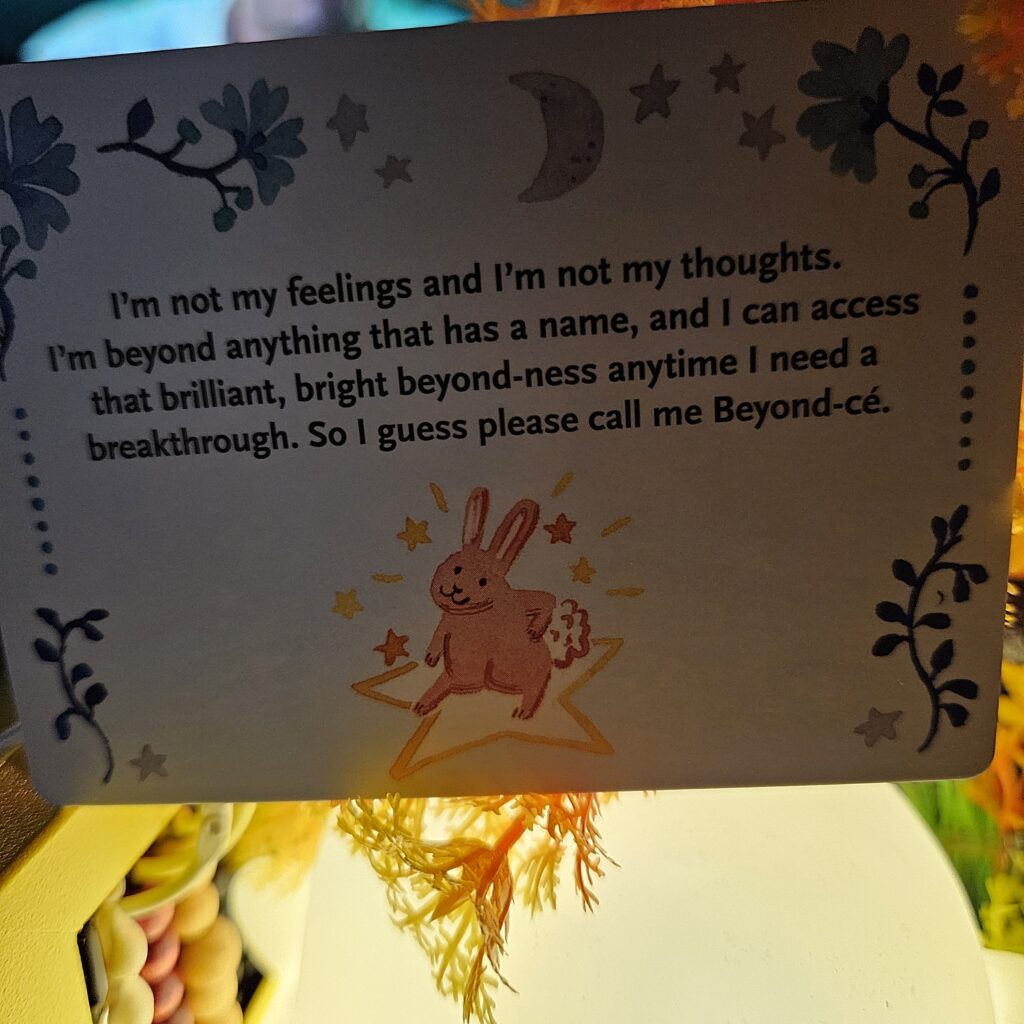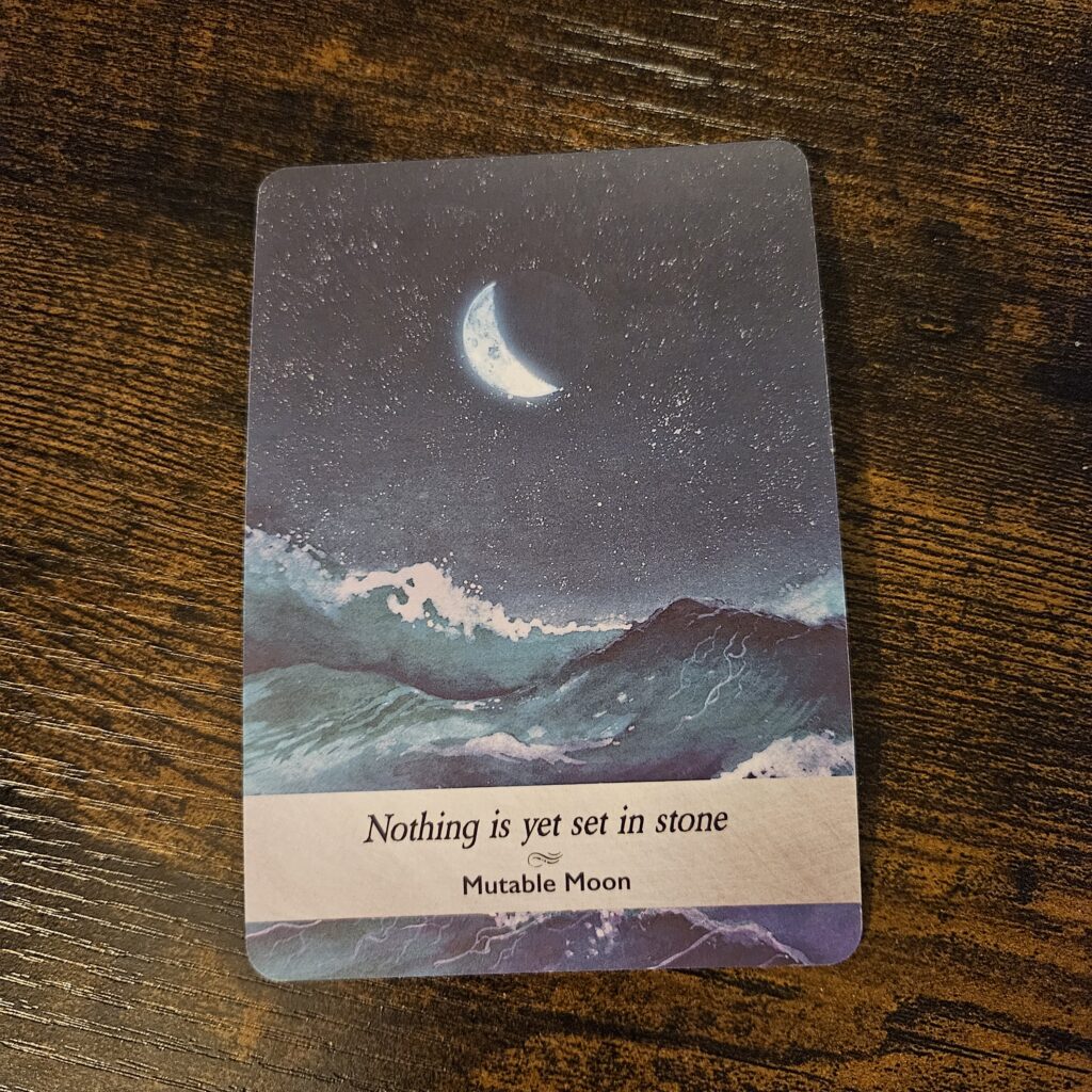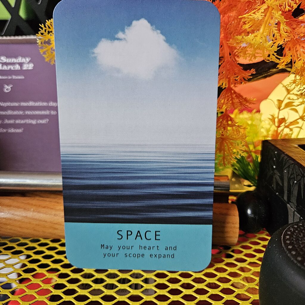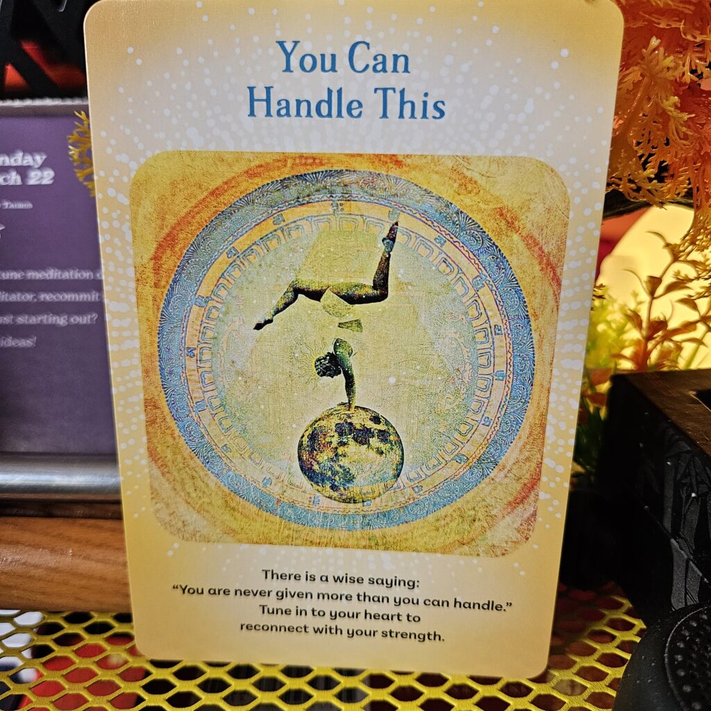 The (some version) cards I share, some have been in existence for eons, some people wouldn’t make a decision without their use, and some are affirmations and reminders to/for myself. I use these pulled cards as a starting point, a push to what I may need to remember for/about myself. I have nothing to profess about what is in reality an universal randomness of a shuffled counted out pick. I can say there are days the randomness is too on the nose.