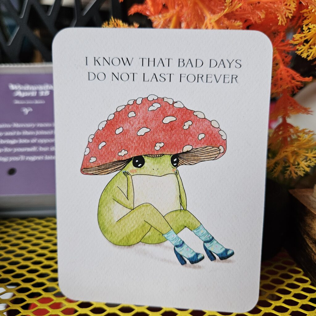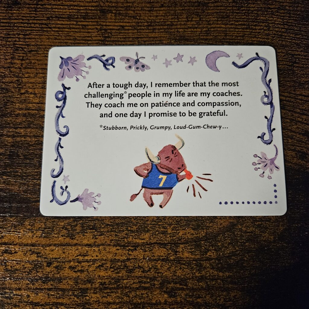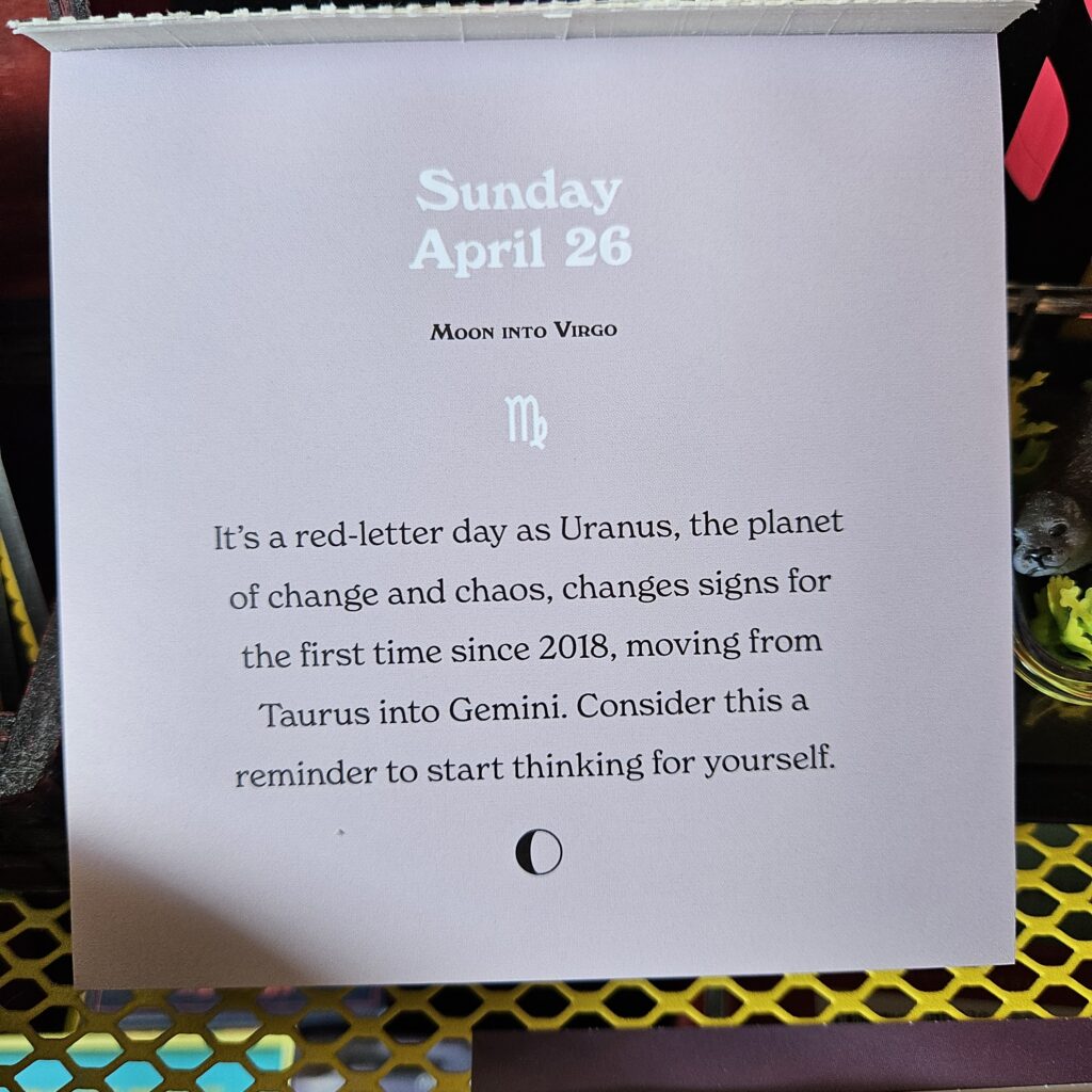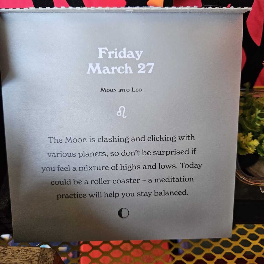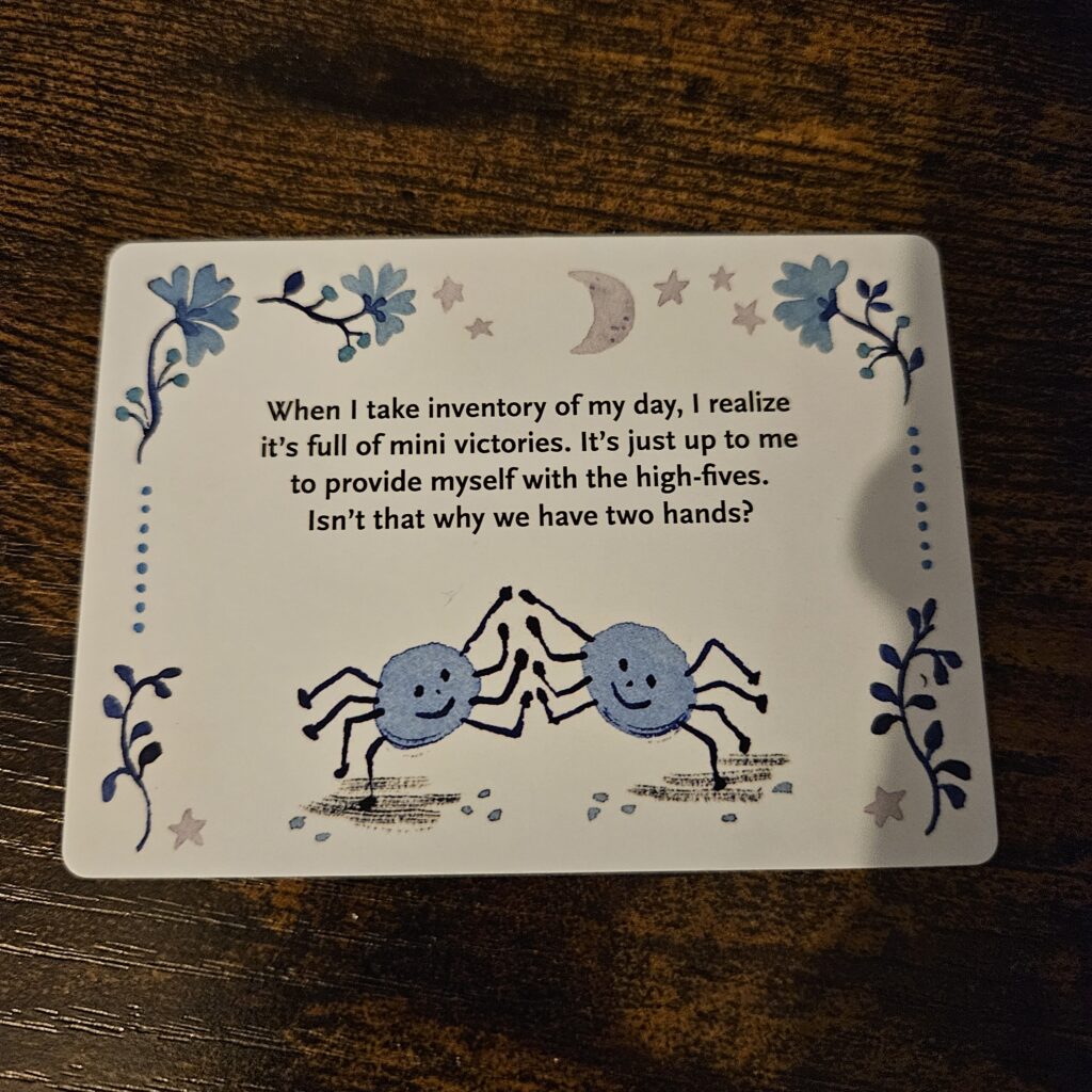 The (some version) cards I share, some have been in existence for eons, some people wouldn’t make a decision without their use, and some are affirmations and reminders to/for myself. I use these pulled cards as a starting point, a push to what I may need to remember for/about myself. I have nothing to profess about what is in reality an universal randomness of a shuffled counted out pick. I can say there are days the randomness is too on the nose.