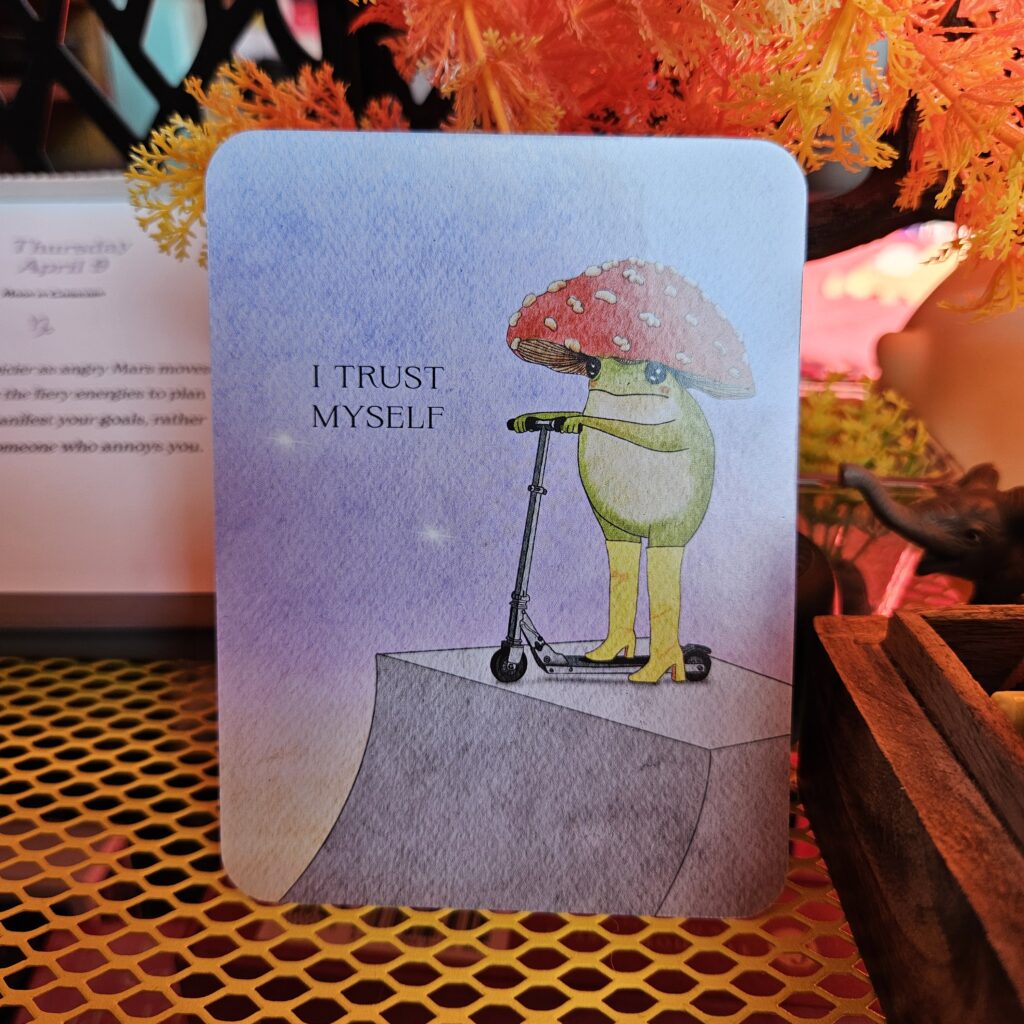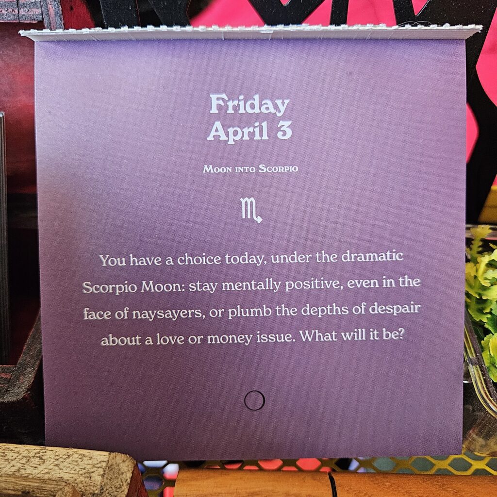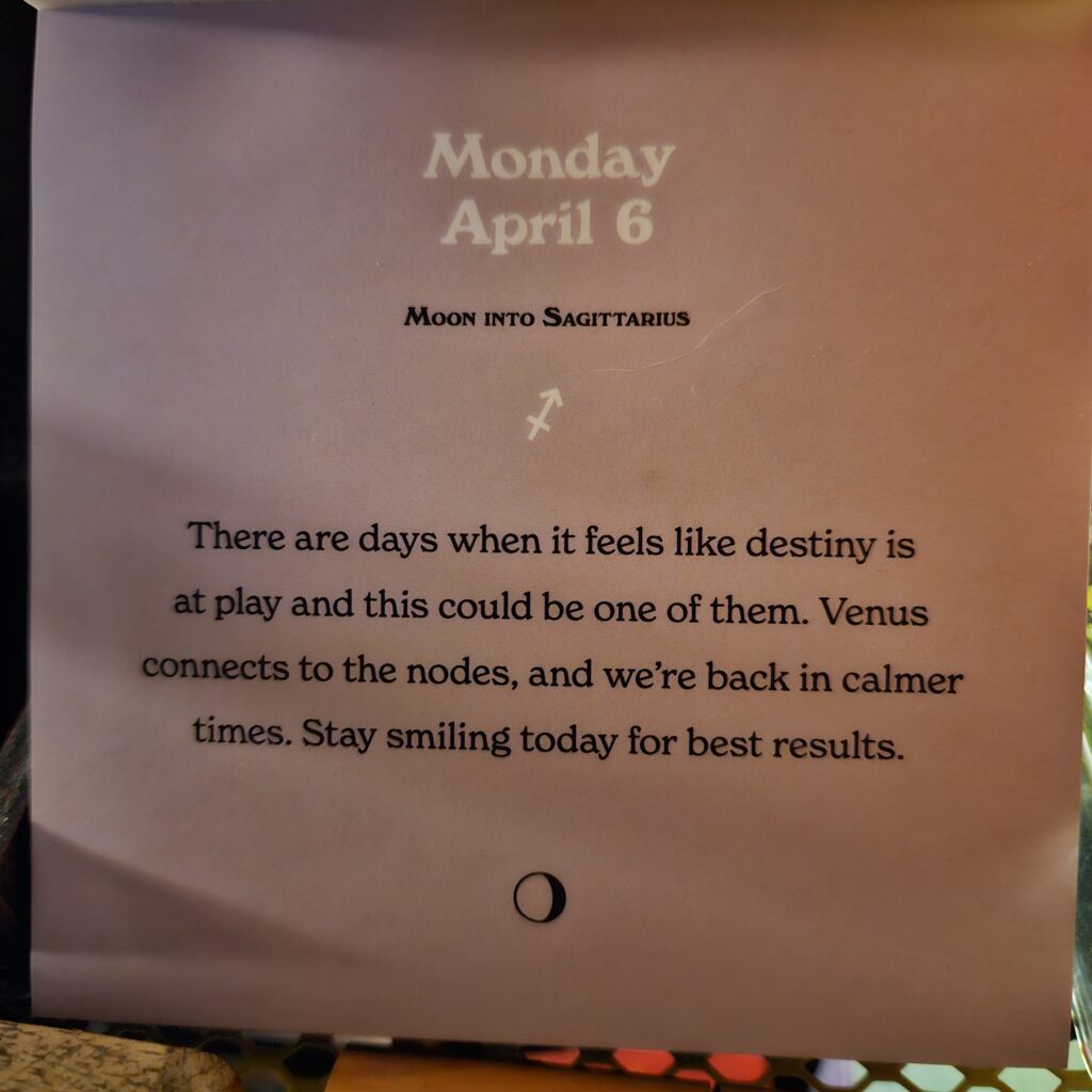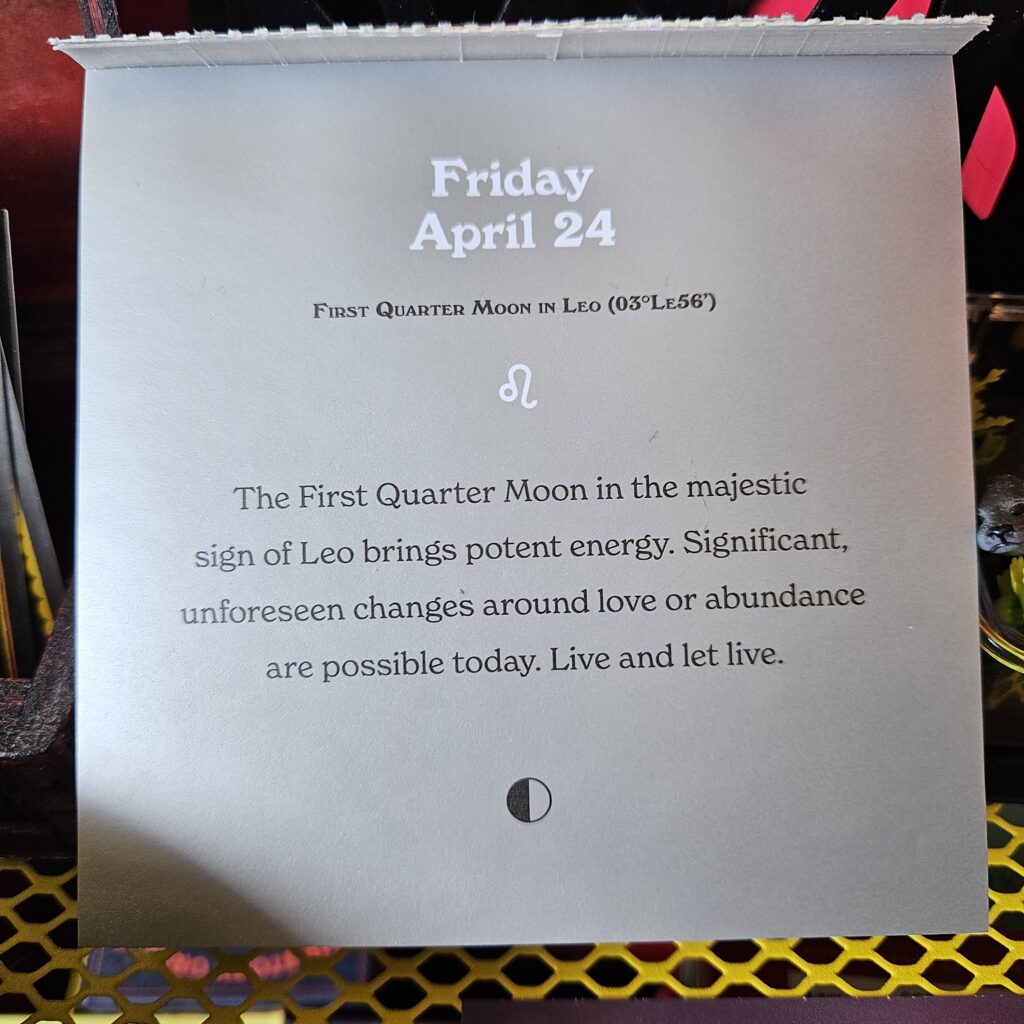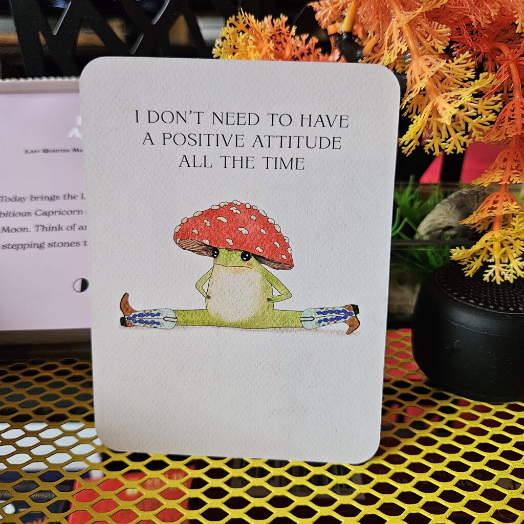 The (some version) cards I share, some have been in existence for eons, some people wouldn’t make a decision without their use, and some are affirmations and reminders to/for myself. I use these pulled cards as a starting point, a push to what I may need to remember for/about myself. I have nothing to profess about what is in reality an universal randomness of a shuffled counted out pick. I can say there are days the randomness is too on the nose.