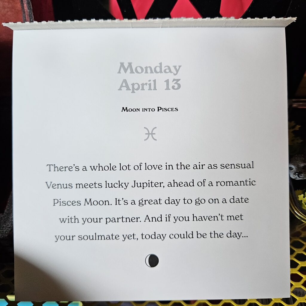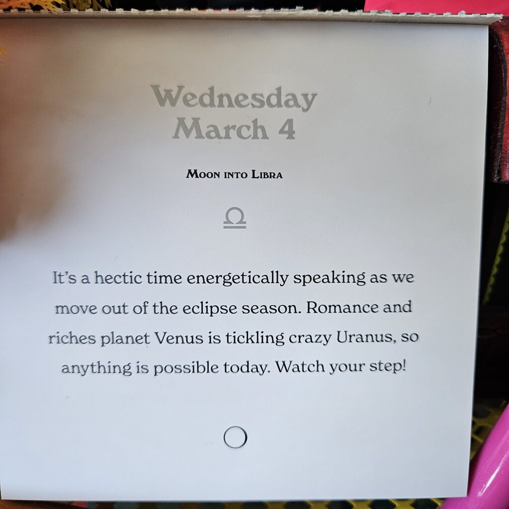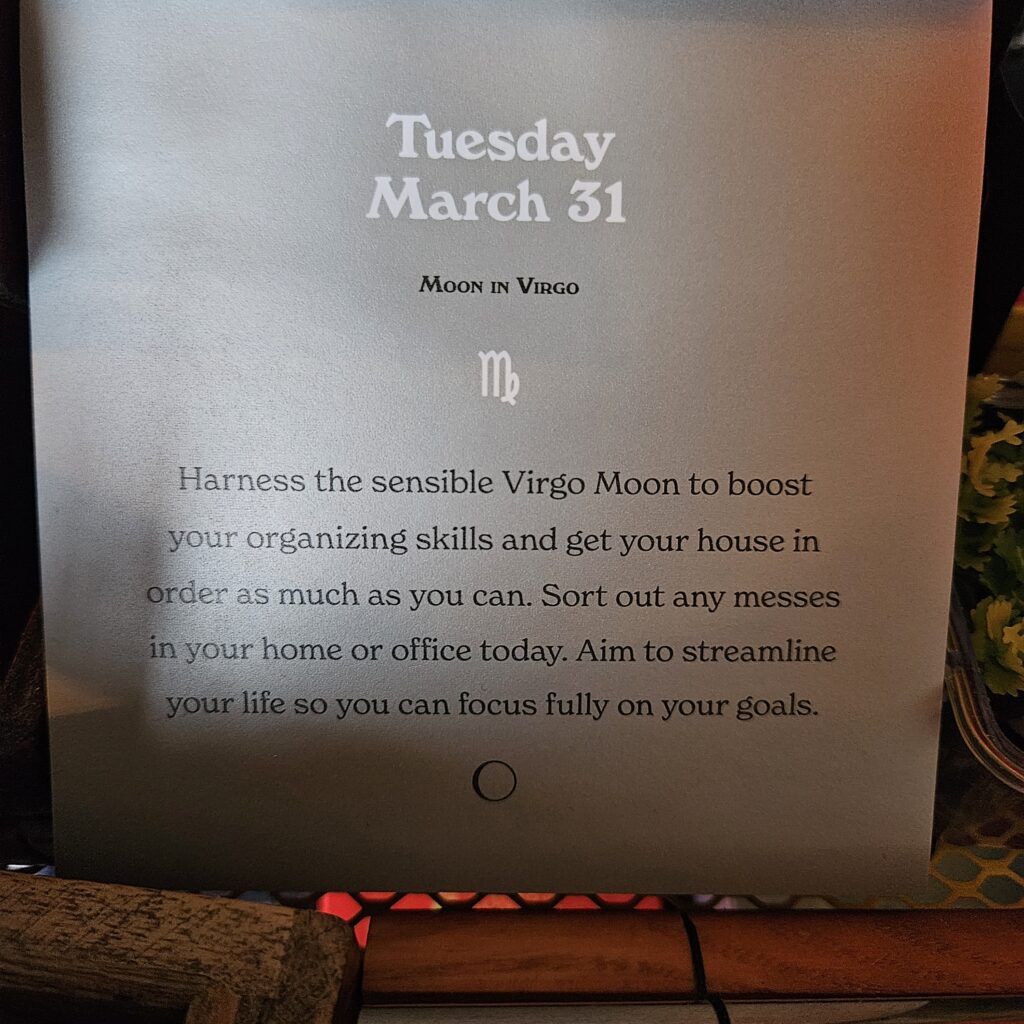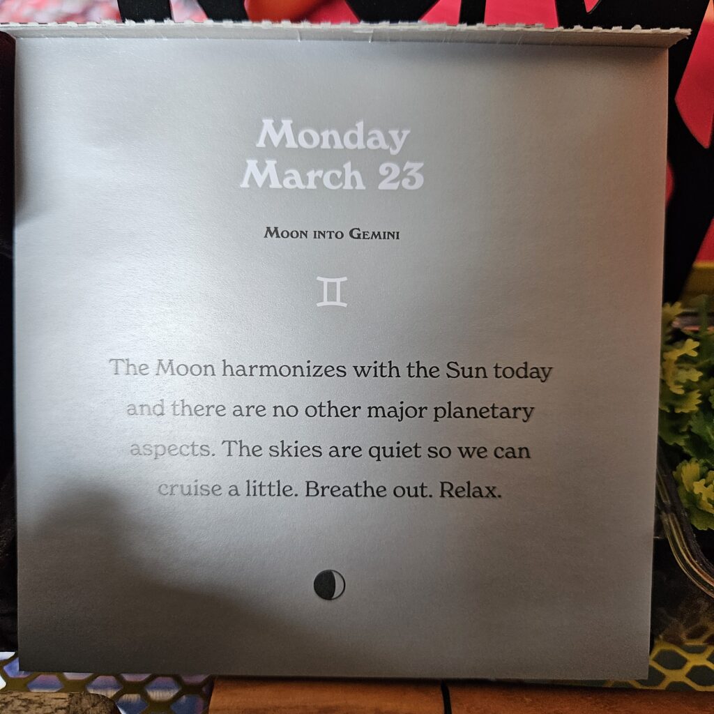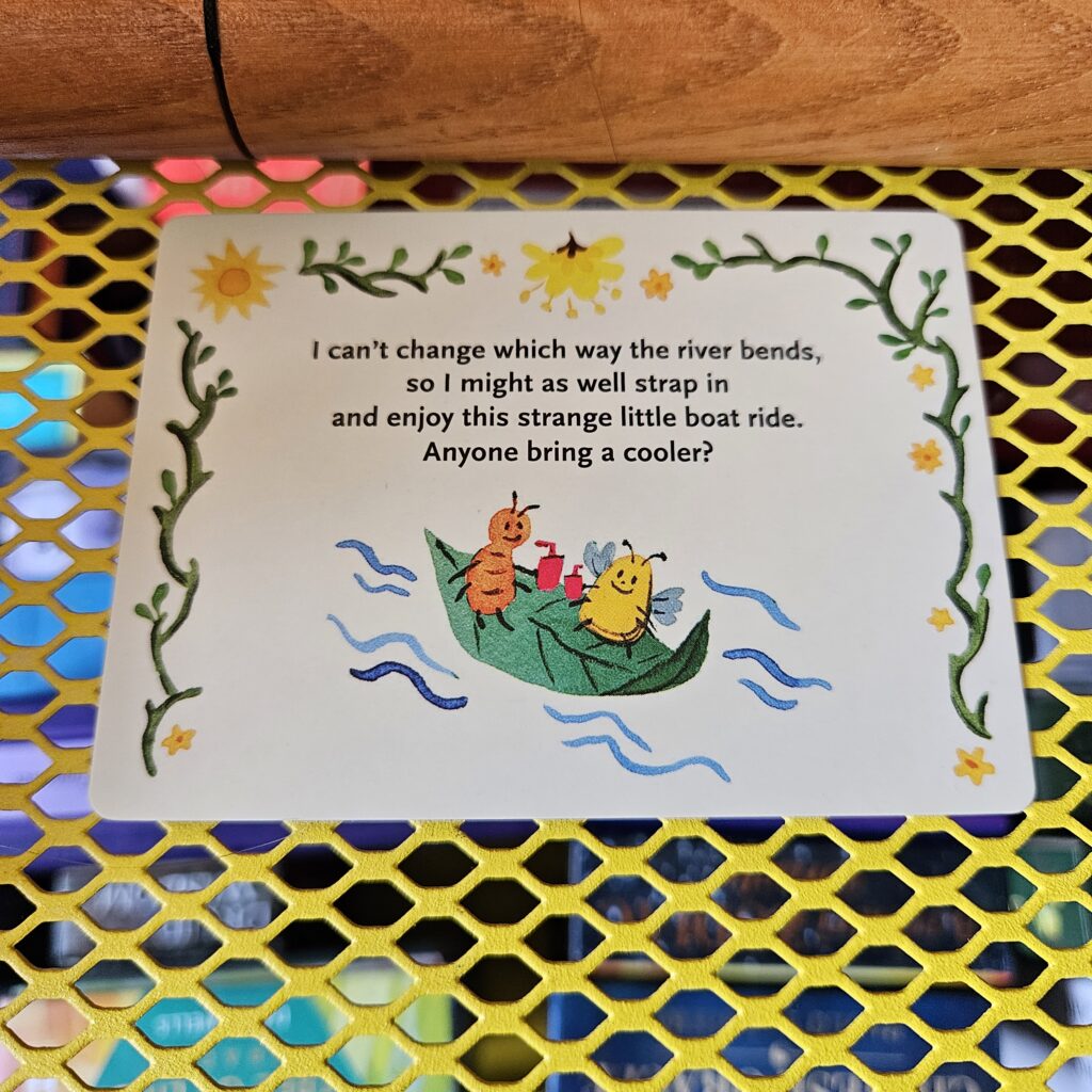 The (some version) cards I share, some have been in existence for eons, some people wouldn’t make a decision without their use, and some are affirmations and reminders to/for myself. I use these pulled cards as a starting point, a push to what I may need to remember for/about myself. I have nothing to profess about what is in reality an universal randomness of a shuffled counted out pick. I can say there are days the randomness is too on the nose.